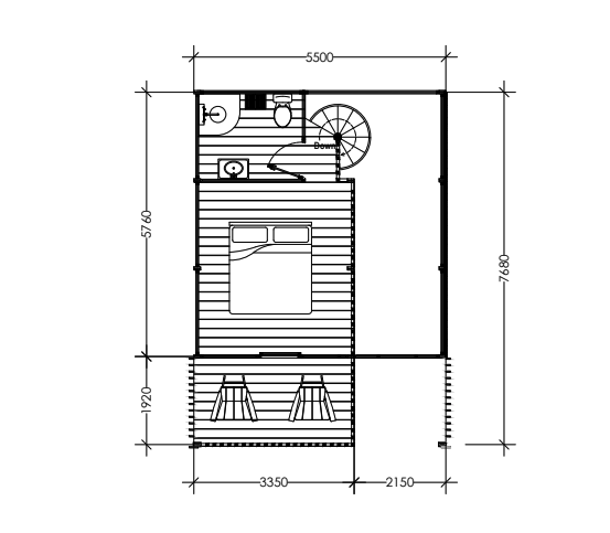 douche cabin with tray, reclaimed cove for douche mixer, floor standing toilet/concealed system, lighting LED, teak vanity, concrete basin, LED mirror, door handle Dekson, teak or composite door, accesoires